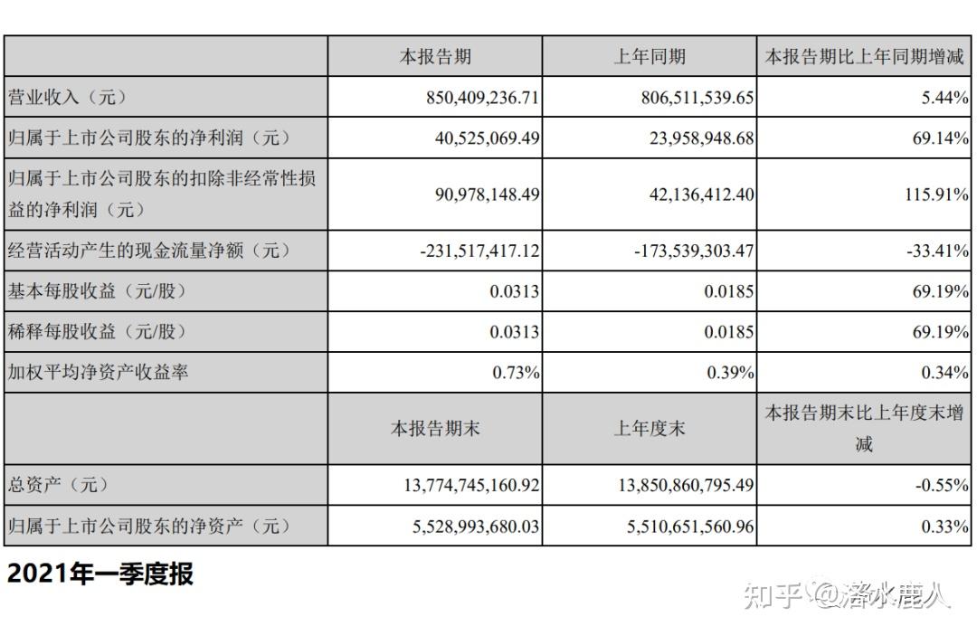 2021 年一季度,营收 8.5 亿,同增 5.44%;归母净利 0.41 亿,同增 69.14%。
