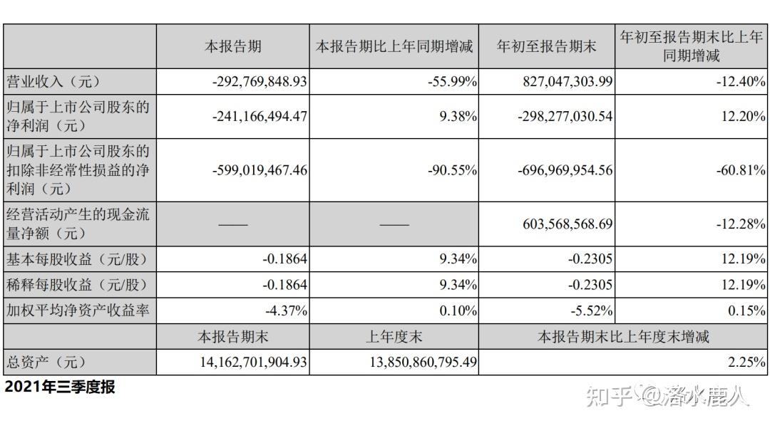 2021 年前三季度,公司营收 8.27 亿,同比下滑 12.40%;扣非归母净利 -6.97 亿,同比下滑 60.81%。
