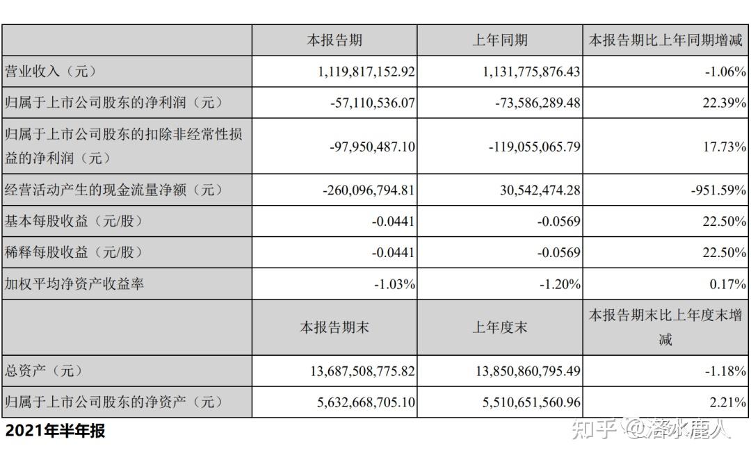 2021 上半年,公司营收11.20亿,同比下滑 1.06%;归母净利 -0.57 亿,比上年同期减亏 22.39%。